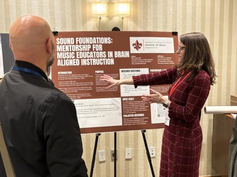 In conjunction with the Symphony’s performance, our faculty were well represented throughout the conference program. Dr. Brett Landry, Dr. Abby South, Dr. Brianne Little, and Prof. Troy Breaux delivered professional development sessions and participated in panel discussions addressing instrumental pedagogy, jazz performance practices, music learning and cognition, and teacher mentorship. Their collective presence further underscored the Deparement of Music's leadership in music education, performance, and scholarly engagement across the State and region.